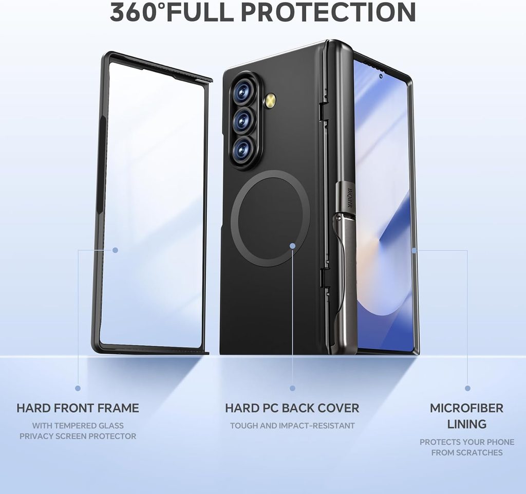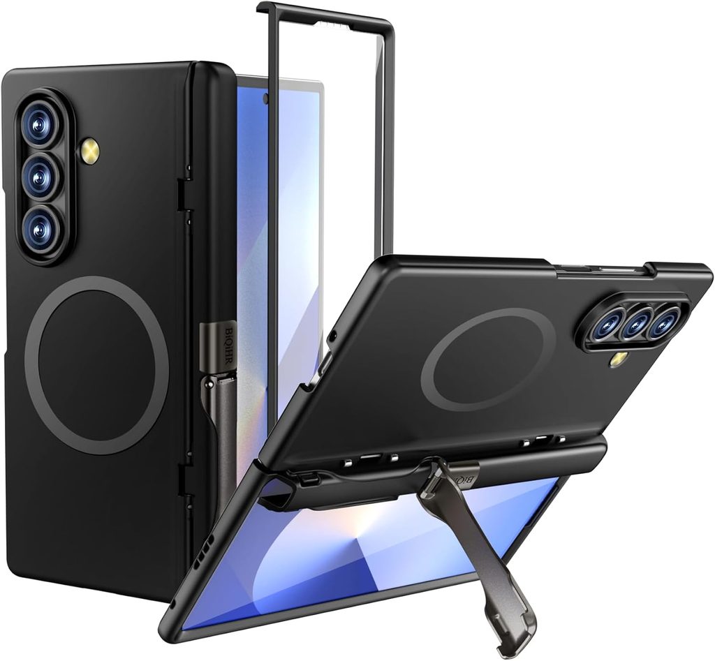 BiQiHR Schutzhülle + HD Schutzfolie für Samsung Galaxy Z Fold7 - 360° Schutz mit Panzerglas und Ständer - Schwarz