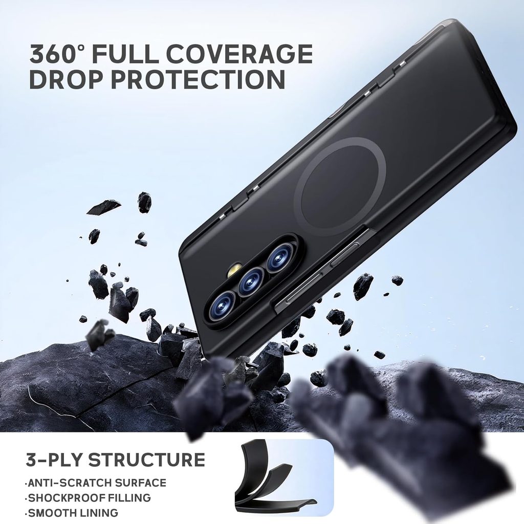 Die Hülle besteht aus einer Kombination von festem Polycarbonat (PC) und flexiblen TPU-Rändern, die das Anbringen erleichtern und gleichzeitig die Stoßfestigkeit erhöhen. Im Lieferumfang enthalten ist auch ein vorderer Schutzrahmen mit gehärtetem Glas, der das Display vor Beschädigungen schützt. Dank der mehrschichtigen Konstruktion dämpft die Hülle Stöße effektiv ab und trägt dazu bei, die Lebensdauer Ihres Geräts zu verlängern.