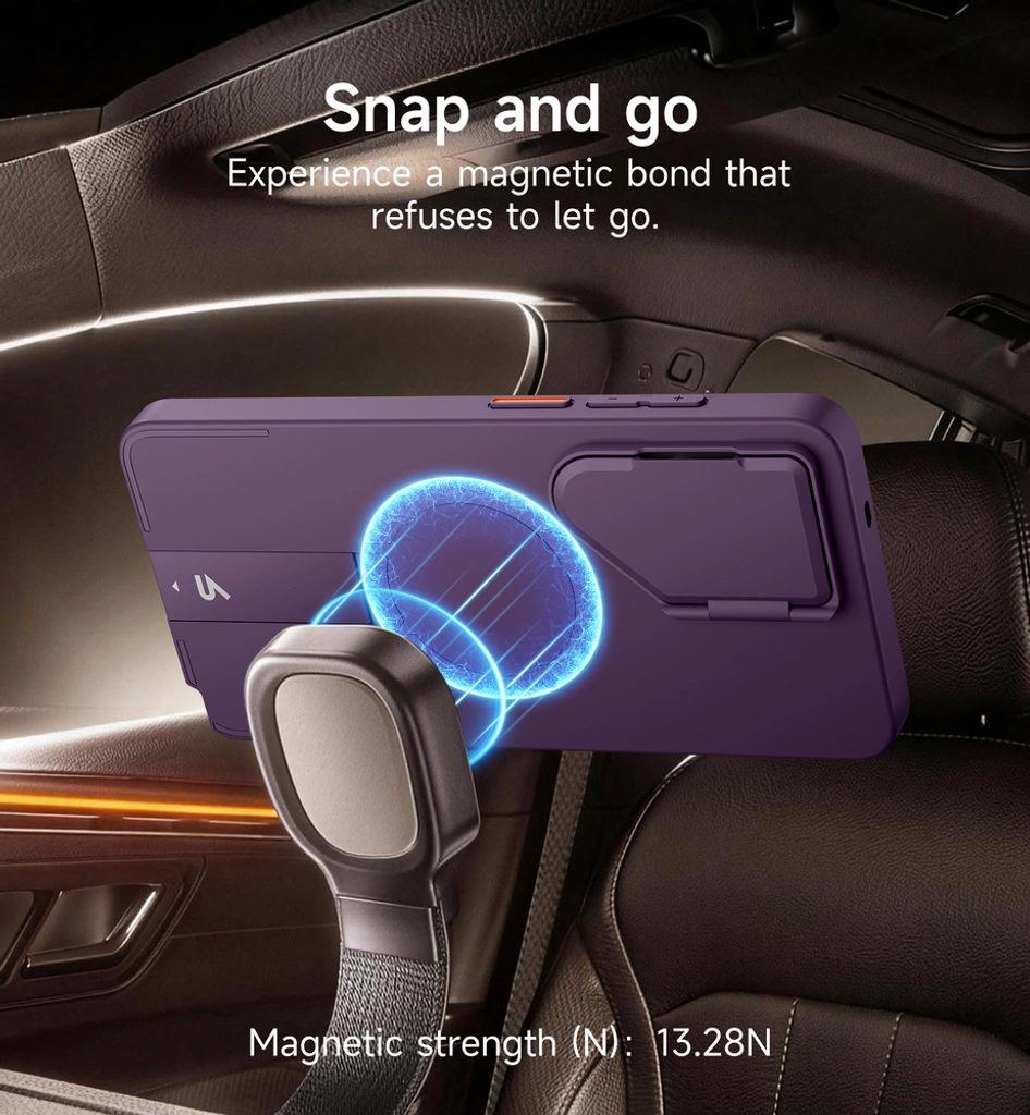 Genießen Sie problemloses Laden und einfache Befestigung Ihres Smartphones im Auto! Dank des starken Magnetfelds mit einer Leistung von bis zu 13,28 N hält die Hülle fest an magnetischen Halterungen, einschließlich kabelloser Ladegeräte und Auto-Halterungen.
